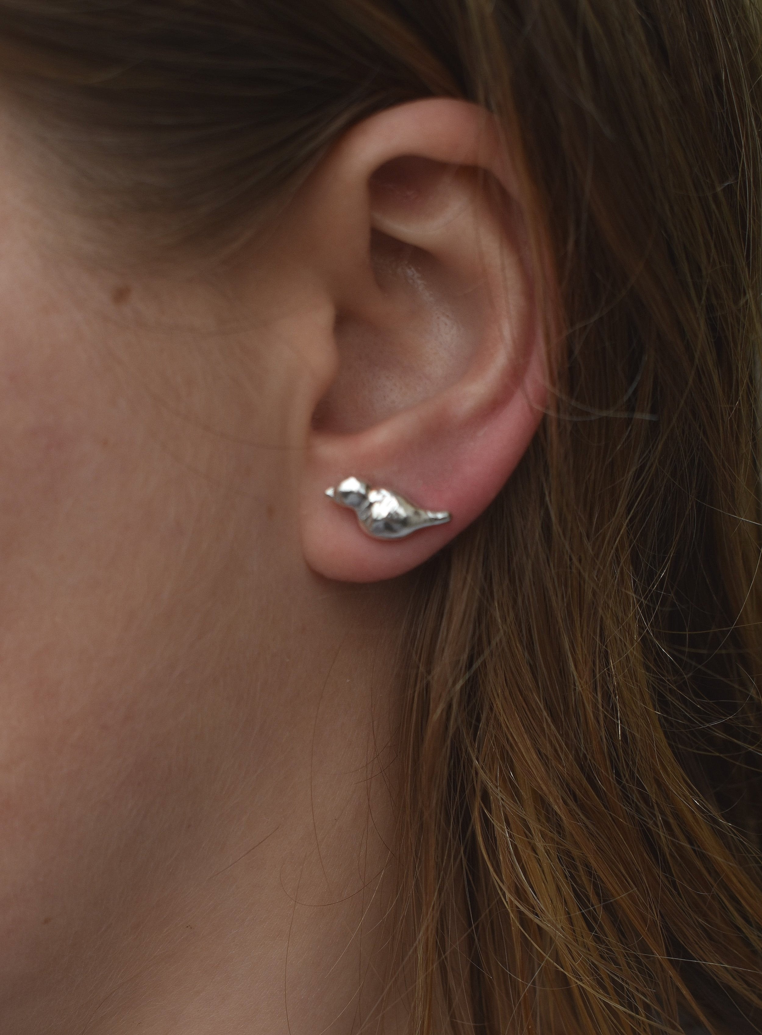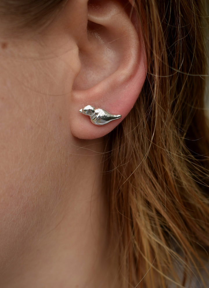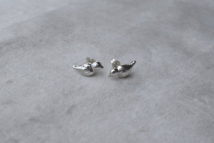 Silver birdie studs made from 100% recycled solid silver and hallmarked.