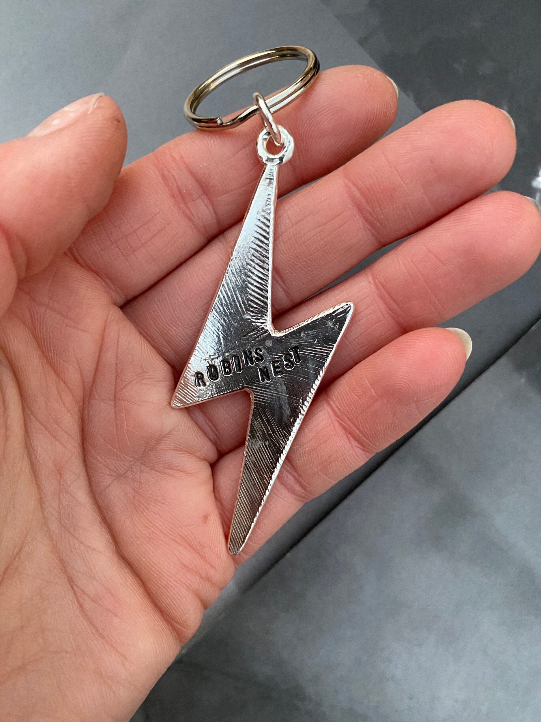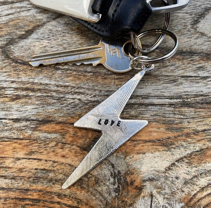 Bolt keyring made from recycled silver on a stainless steel key ring. With or without personalisation.