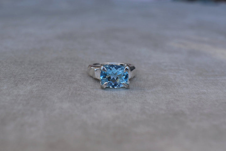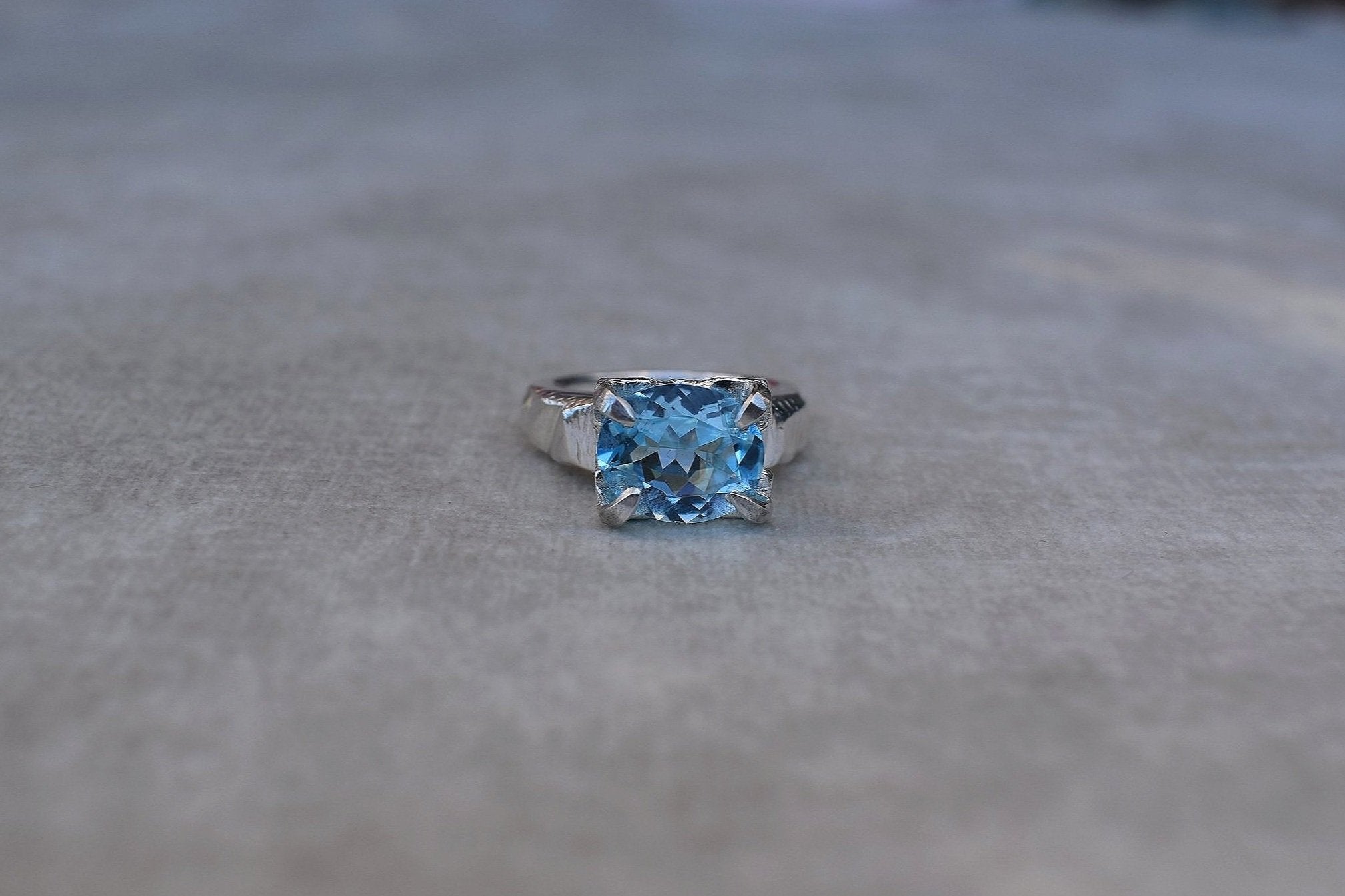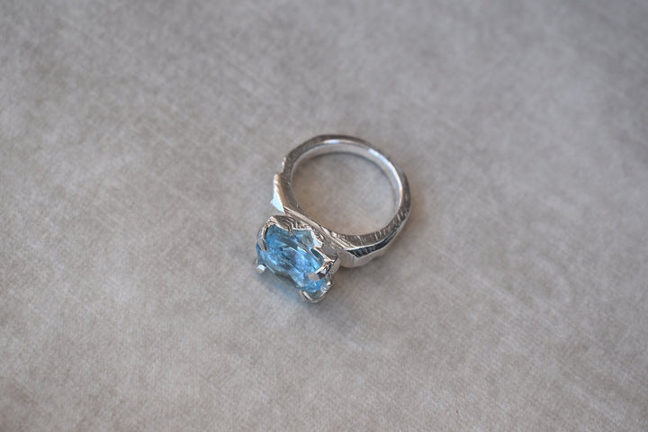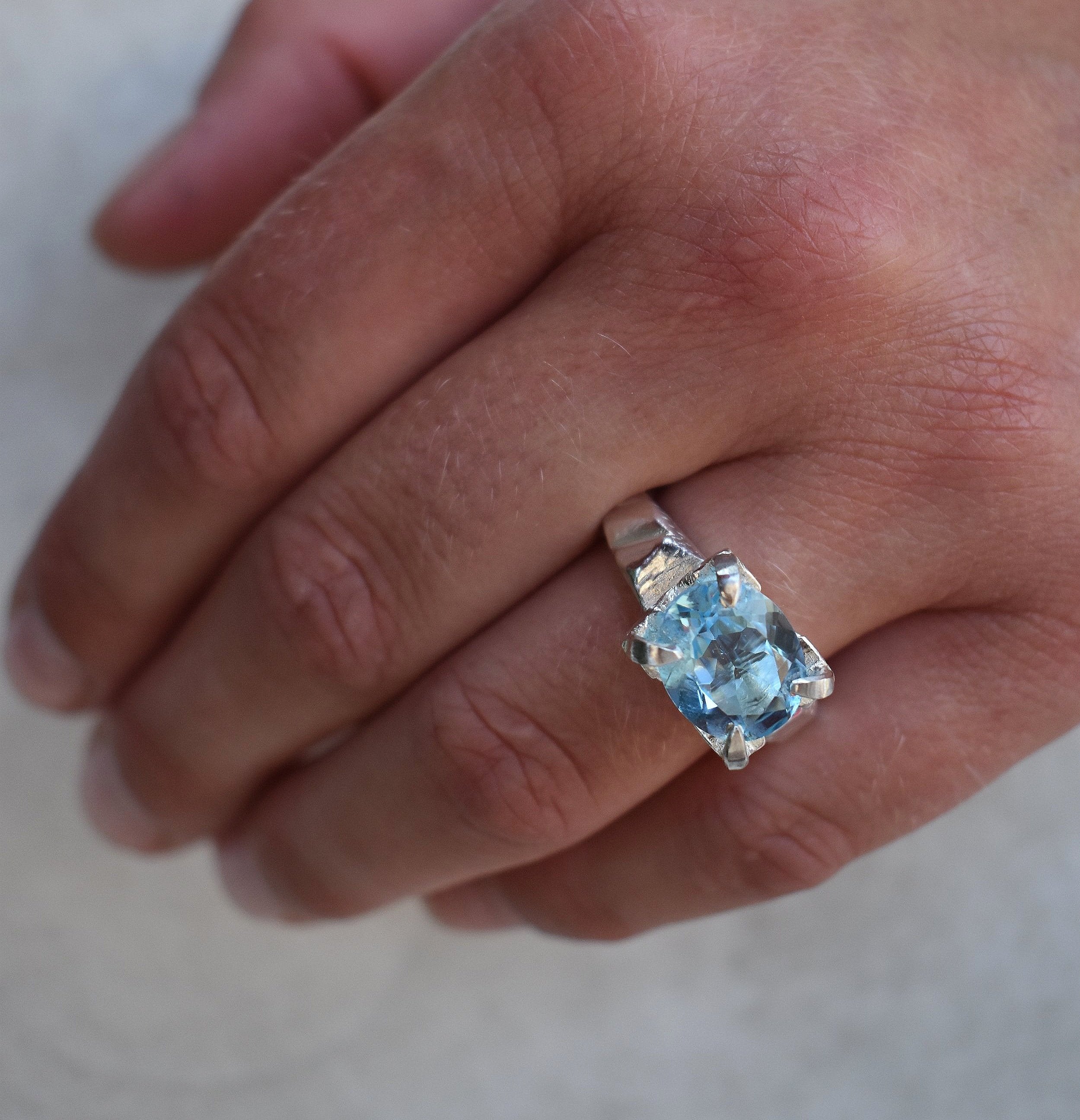 This is a beautiful oval cut blue topaz set into a hand made solid silver setting.