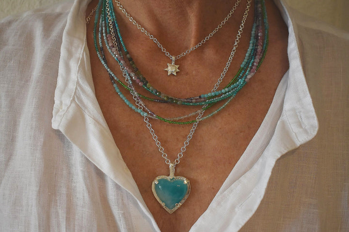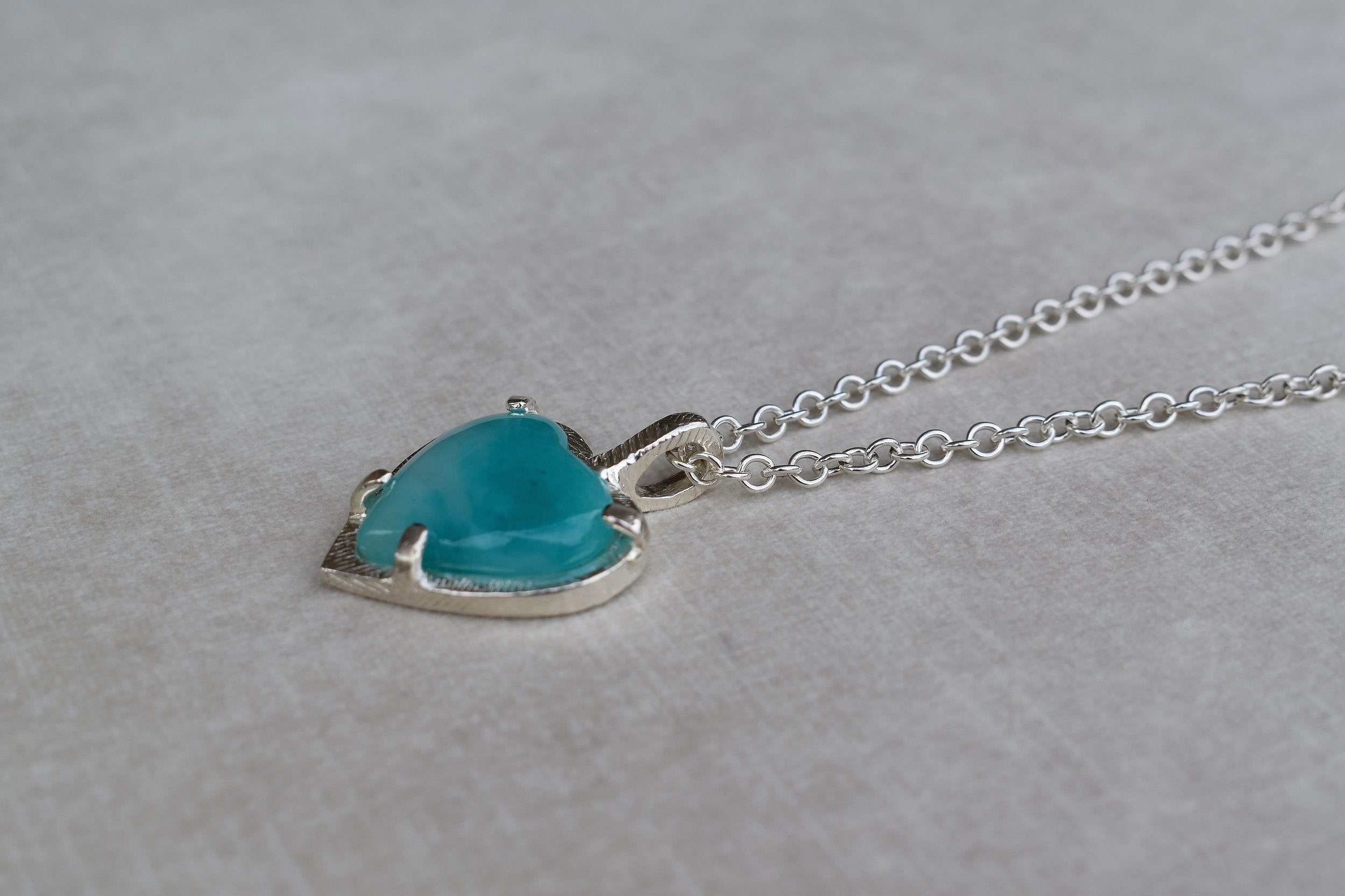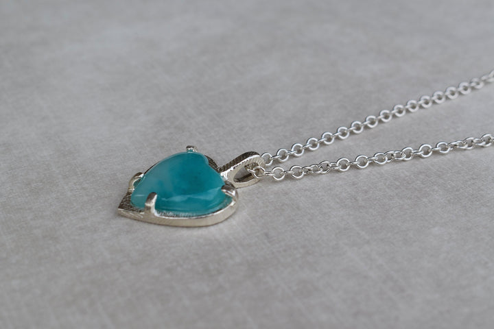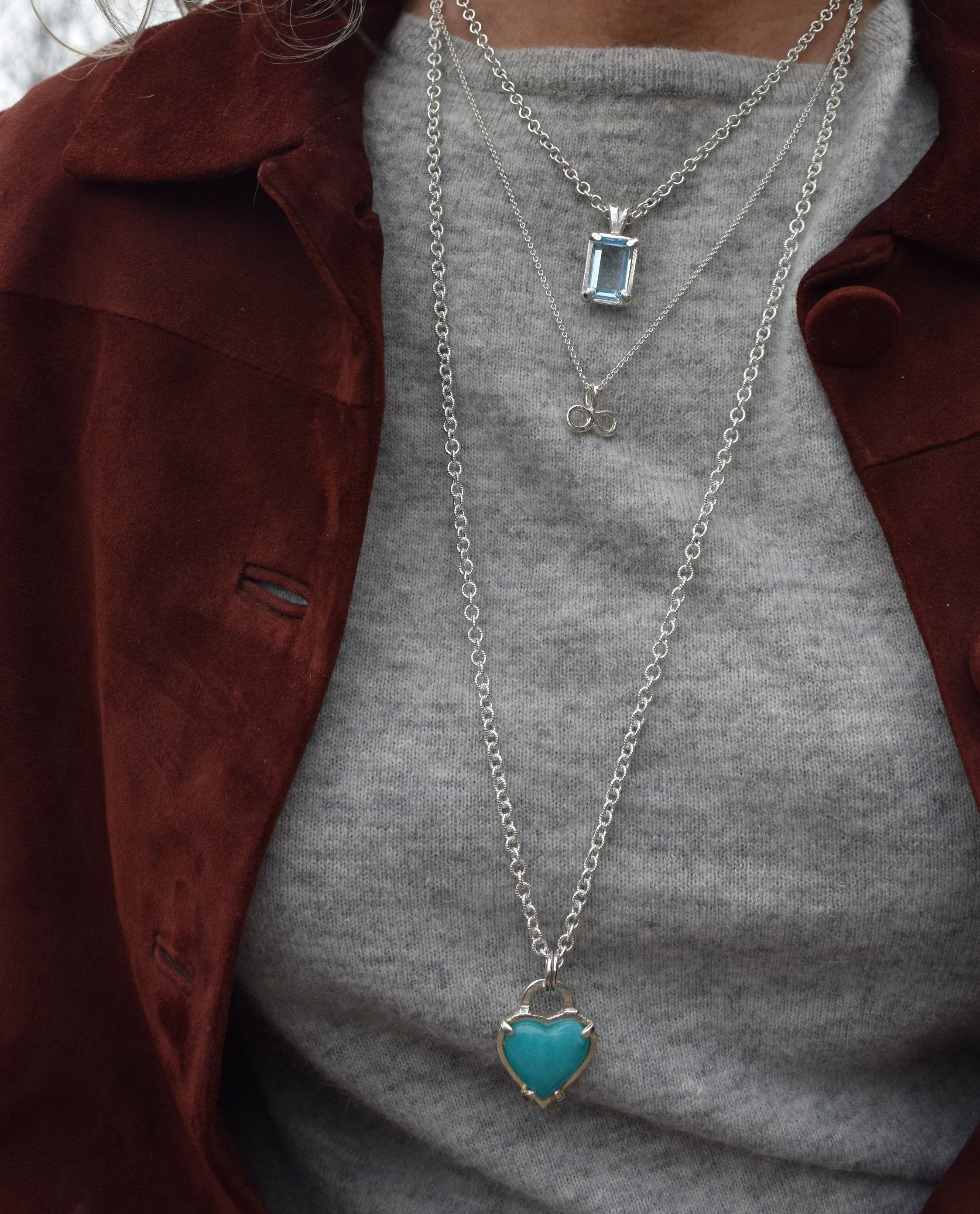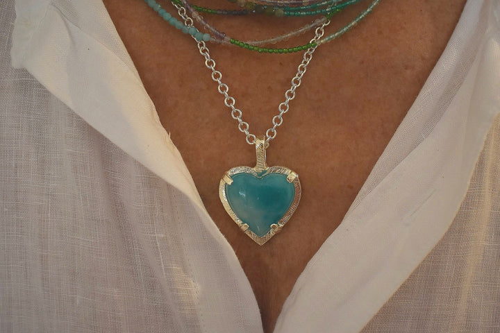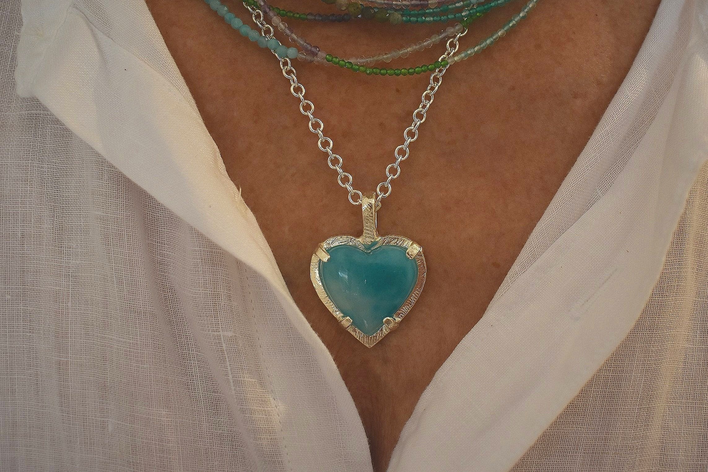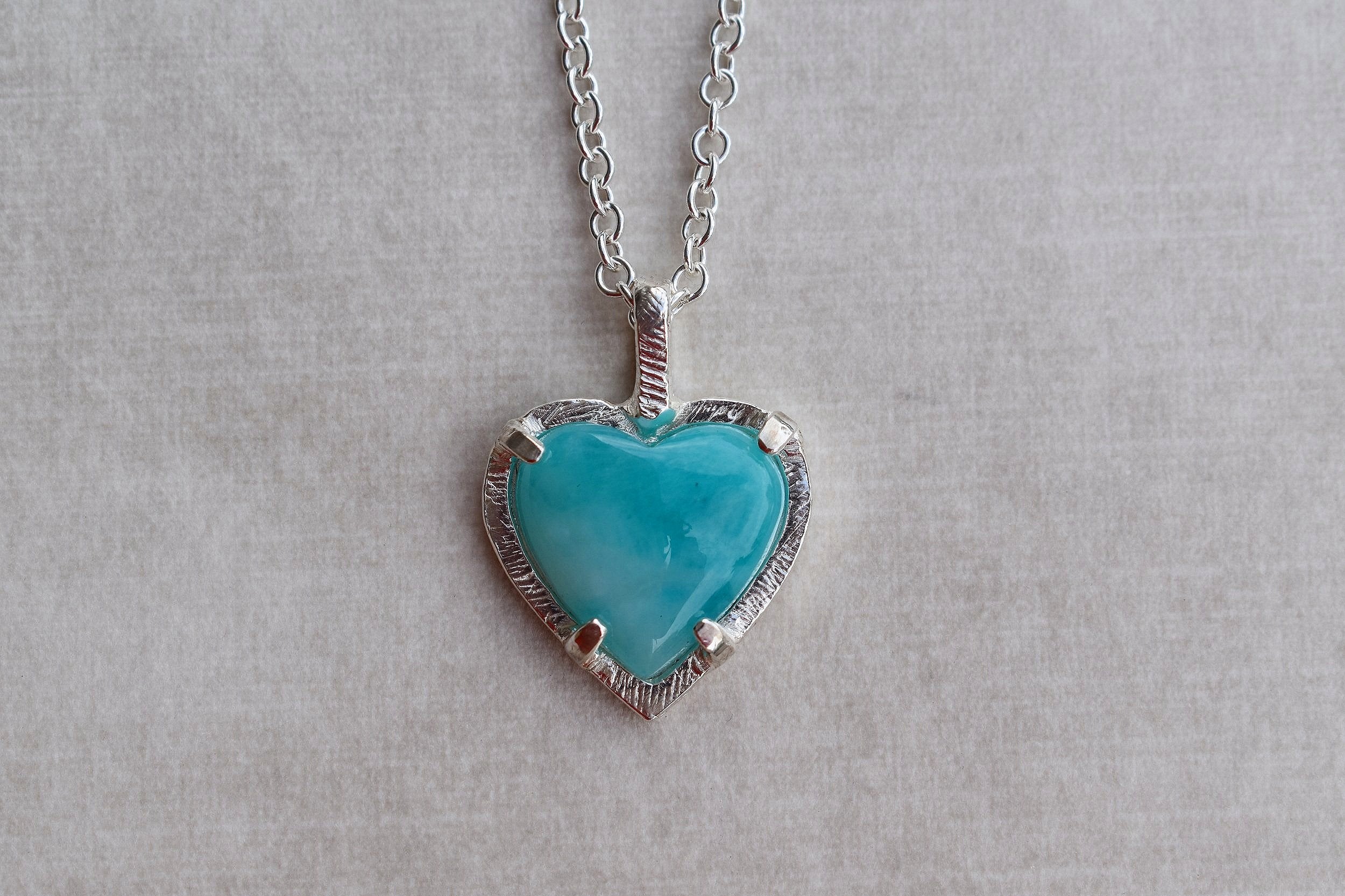 Beautiful blue amazonite heart set in a solid silver hand carved setting on a chunky silver trace chain. Made from 100% recycled silver and hallmarked.