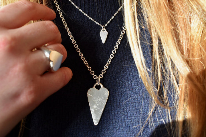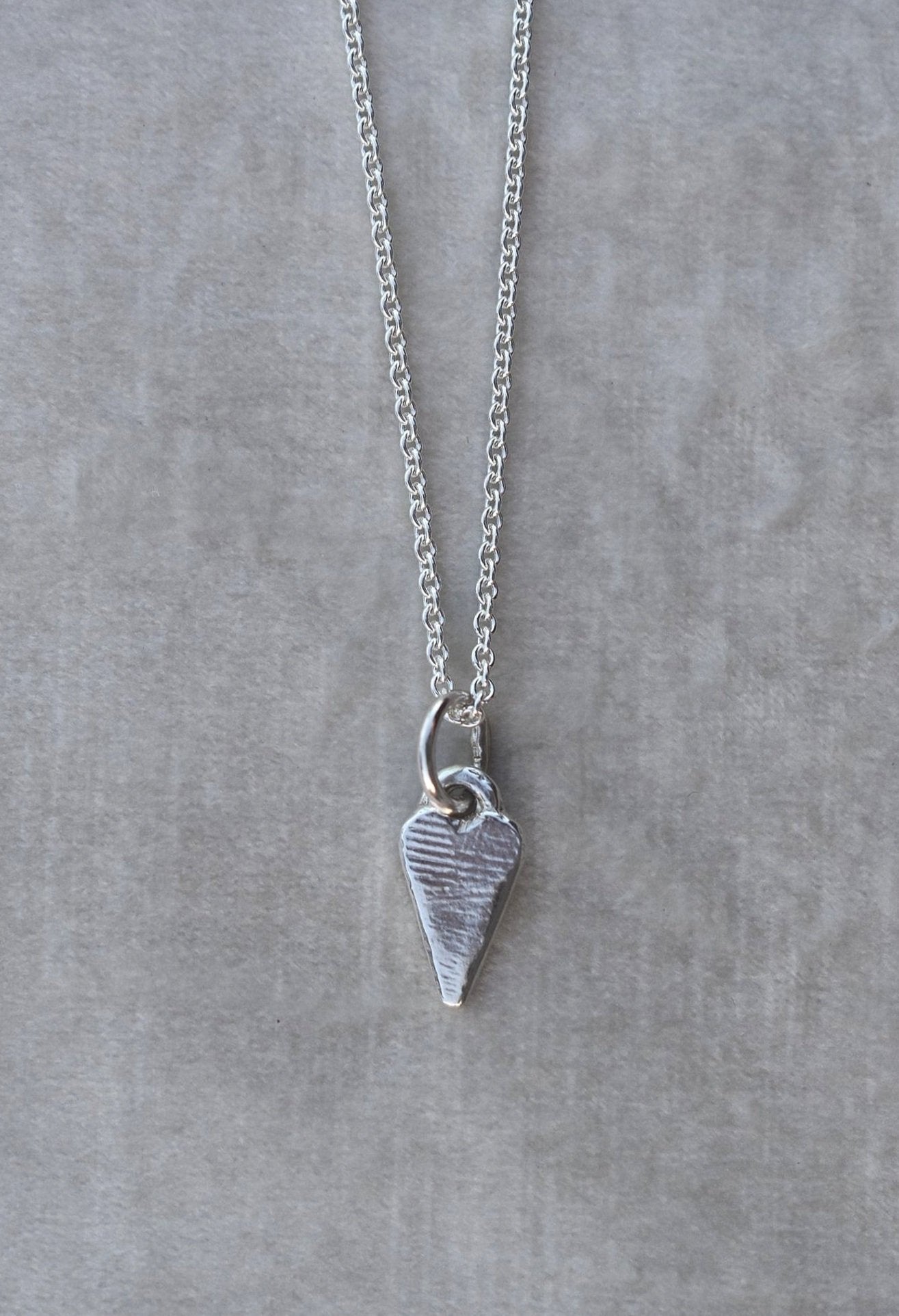Mini silver hand carved heart on a fine silver trace chain. Available to customise with a stone or engraving.
