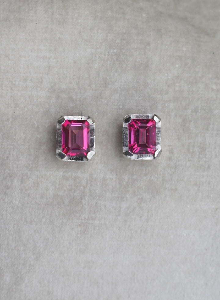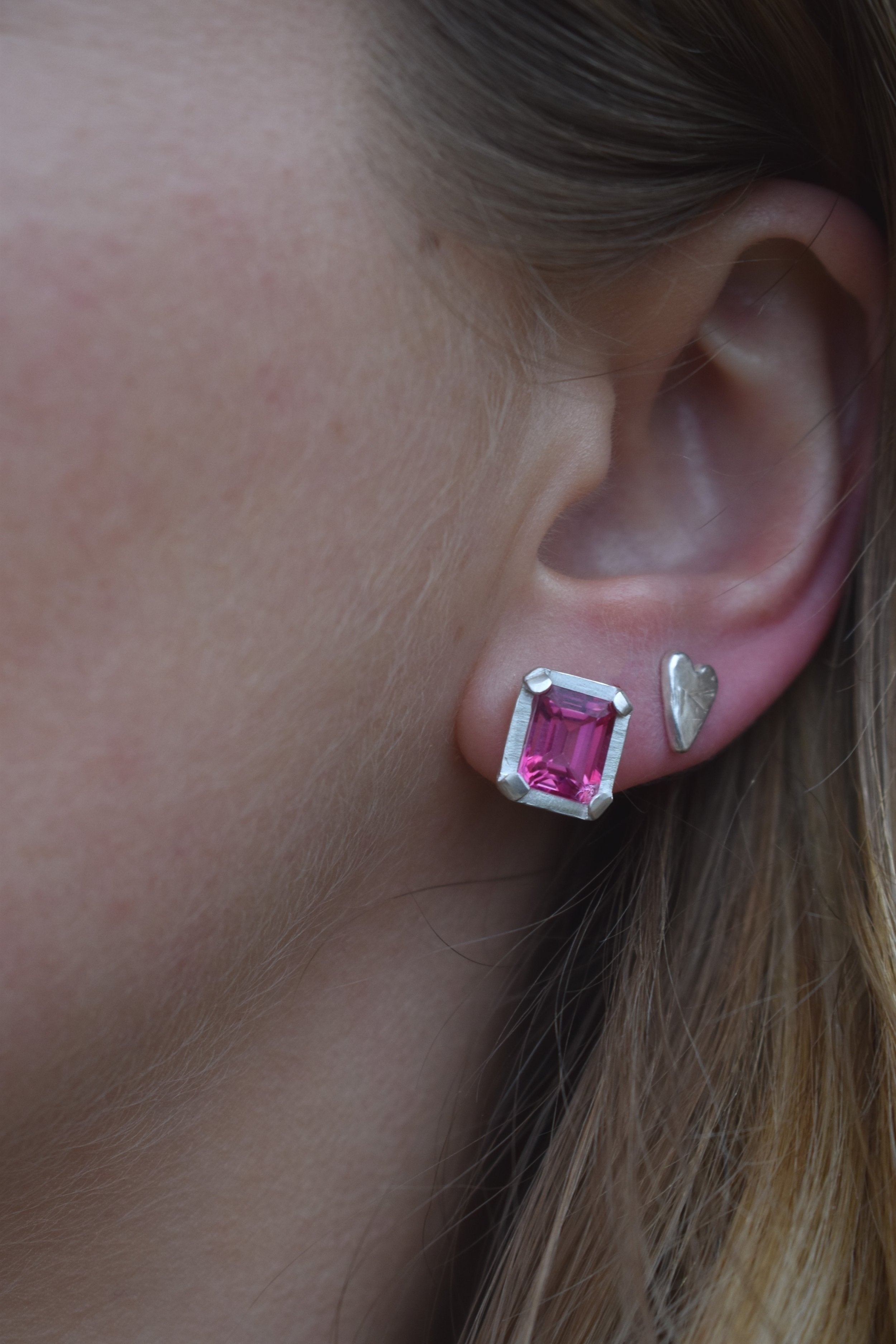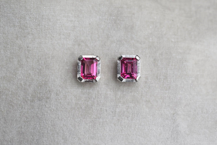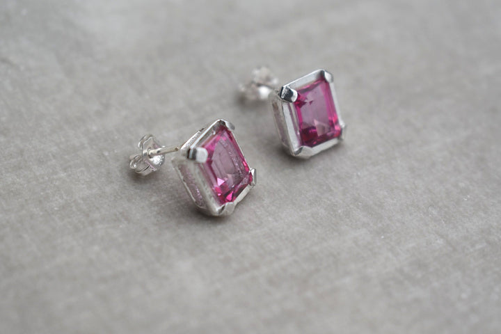 emerald octagon cut pink topaz on silver setting.