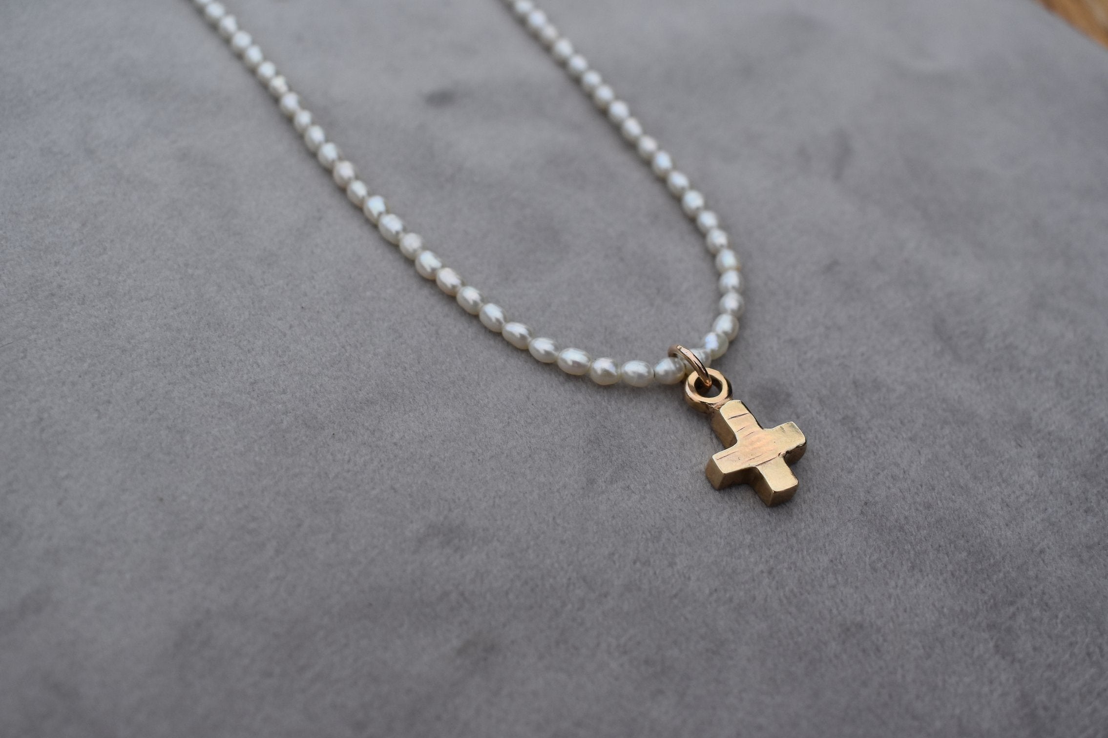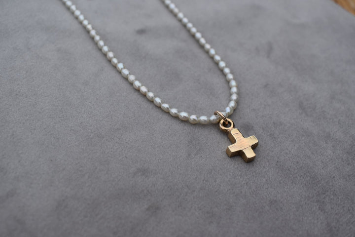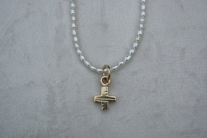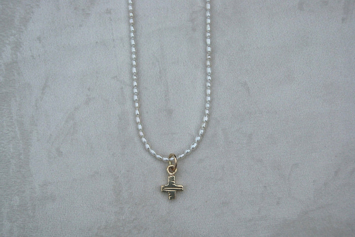 Pearl Strung Necklace with gold cross