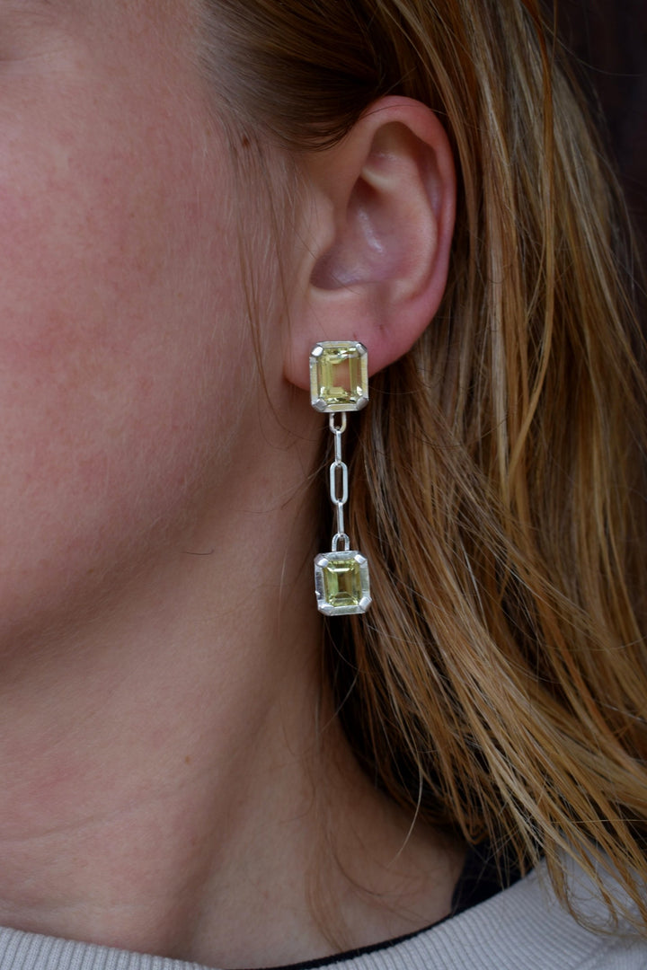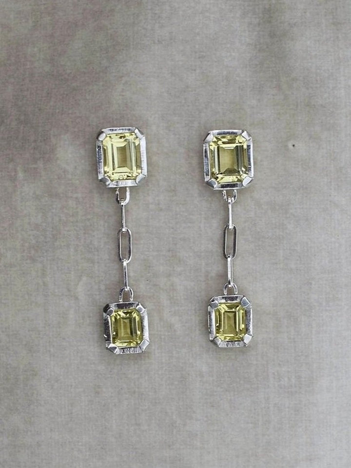 emerald octagon cut lemon quartz on silver setting.
