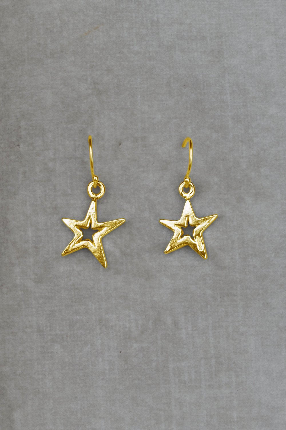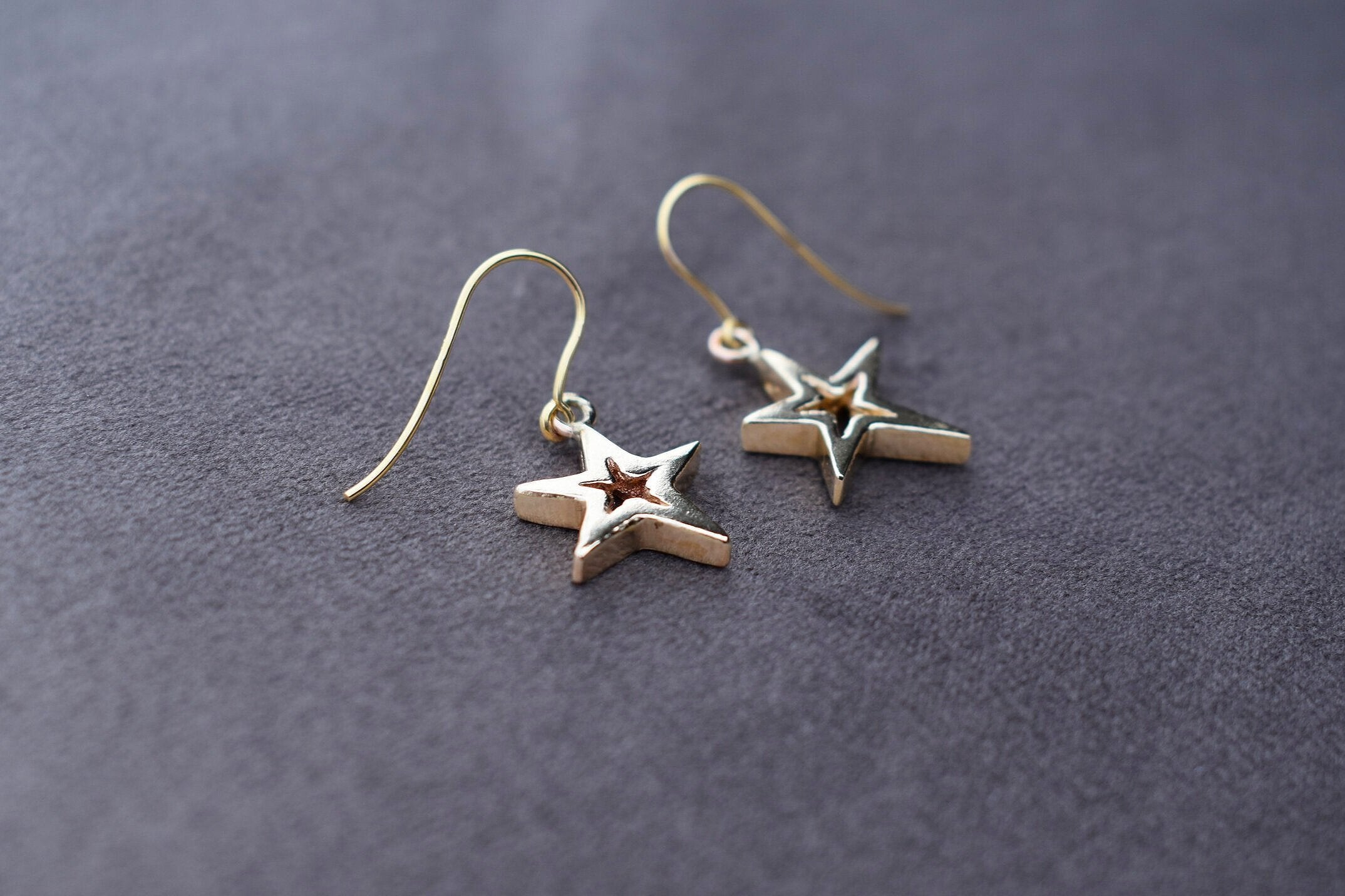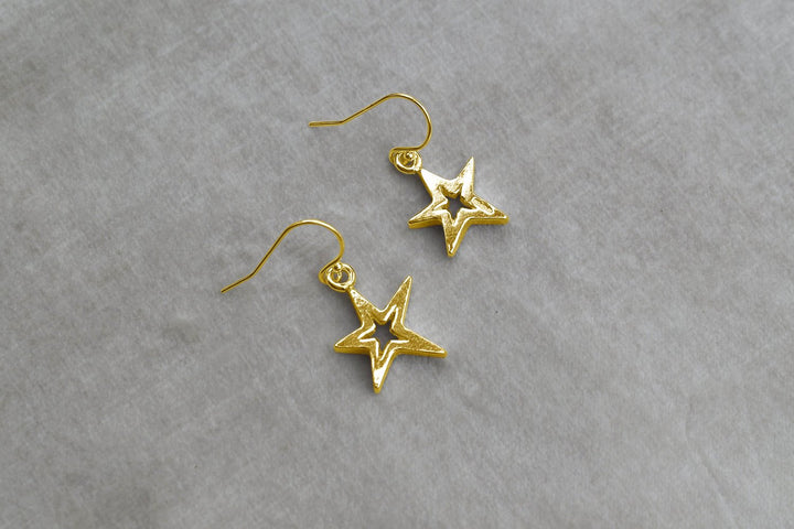 Hand carved 9ct yellow gold baby star charm on gold earring wire.