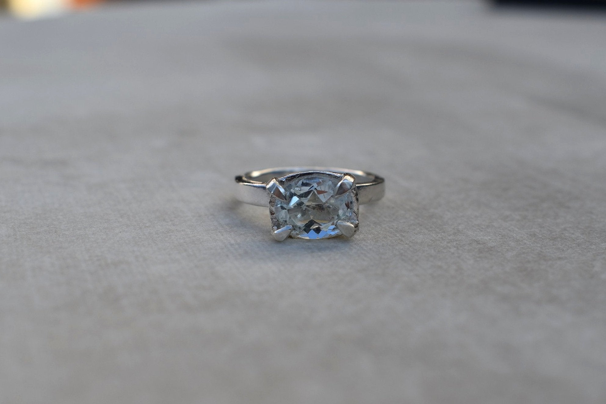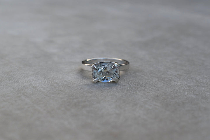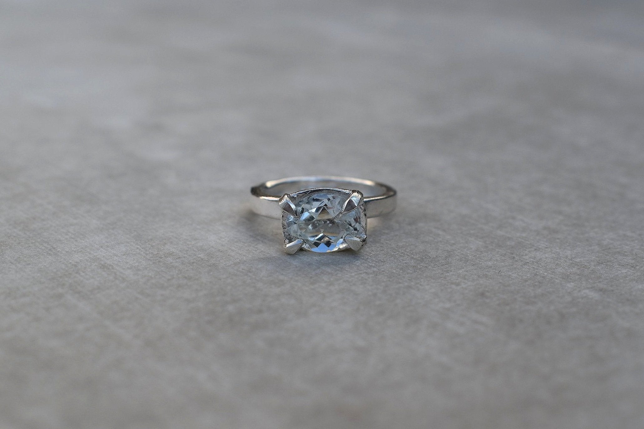 This is a beautiful oval cut aquamarine set into a hand made solid silver setting.