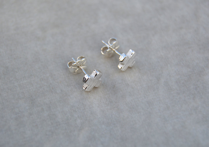 Silver X shape studs. From the noughts & crosses collection mini stud