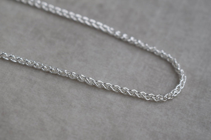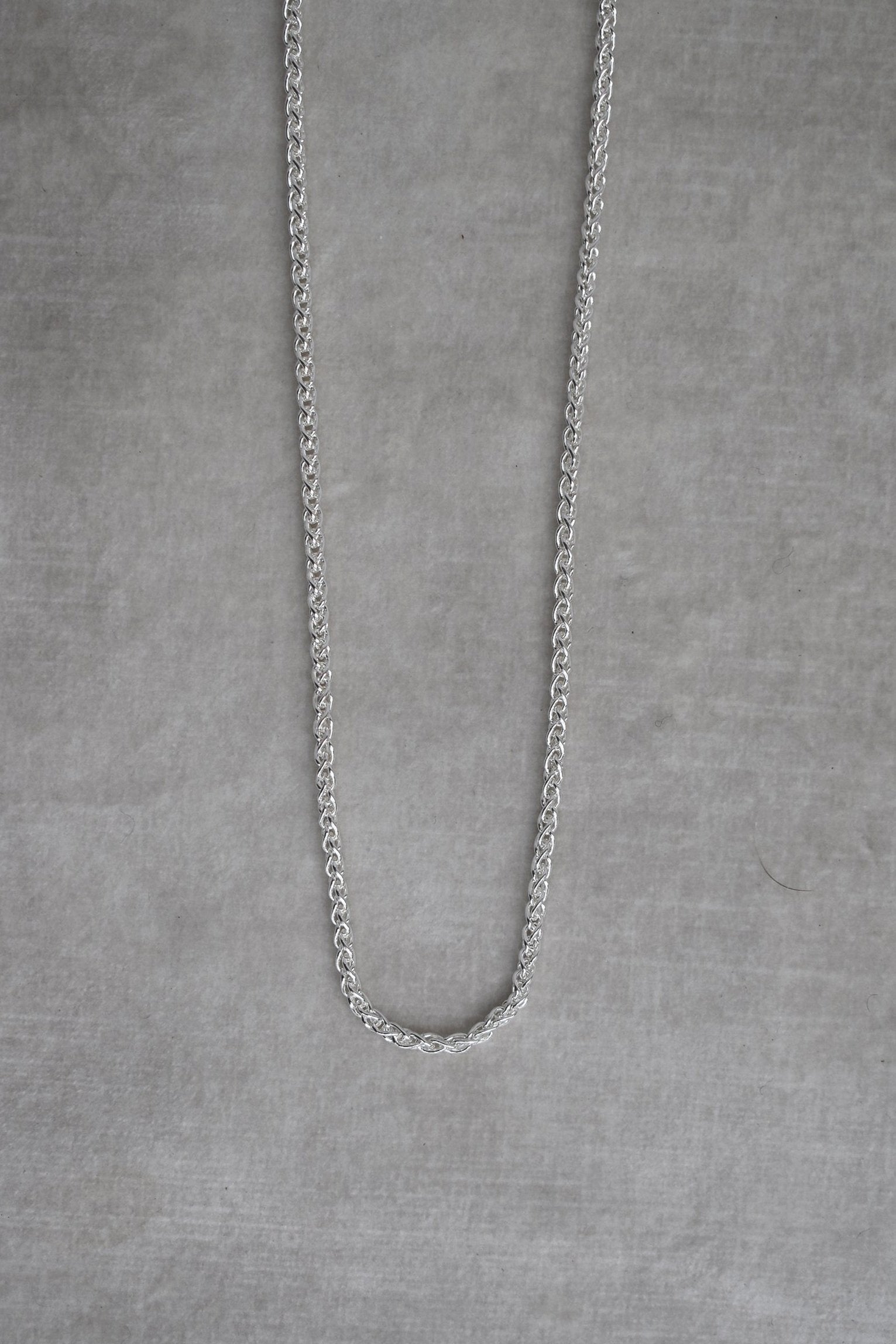 The spiga chain, also known as a wheat chain, known for its curvaceous style and lovely feel. It's links intertwine beautifully together in a woven like style much like wheat, hence its second name, creating a beautiful intricate design. The spiga chain comes in different lengths and widths with the slimmer widths being more suited for pendants and the thicker widths beautifully worn as a standalone piece. Most pendants can be attached onto this chain.